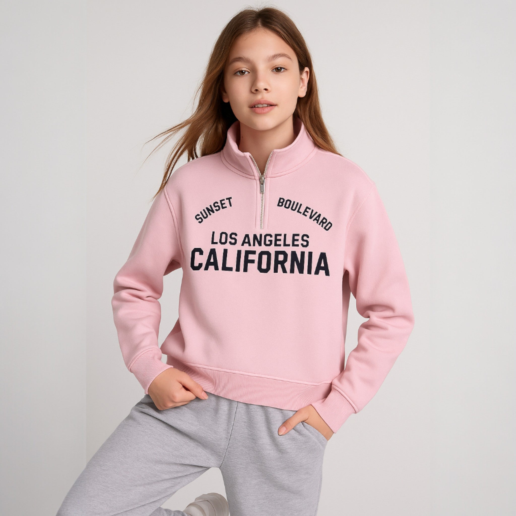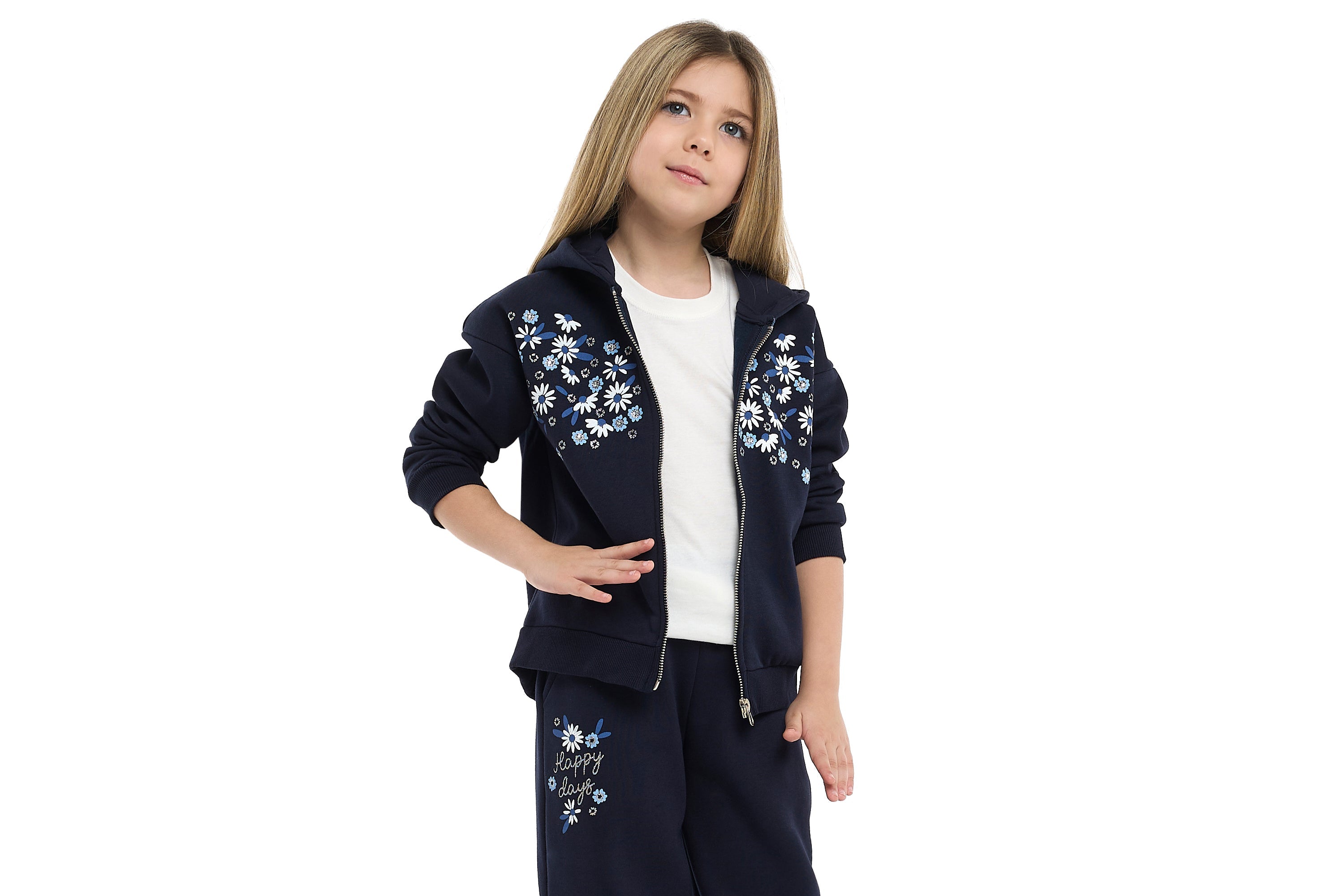 Baby Girl Swan Embroidered Fleece Tracksuit – Grey 2-Piece Set