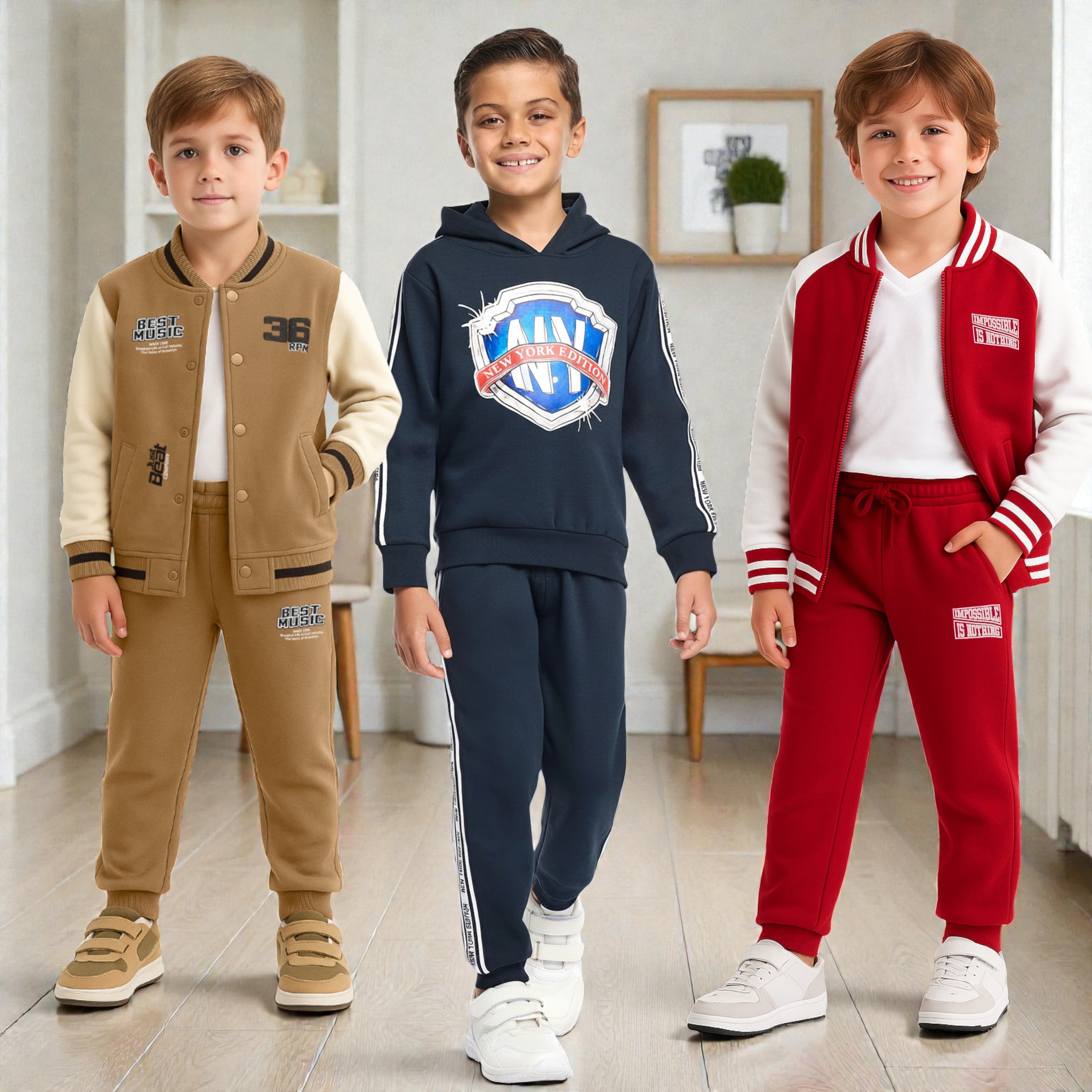 Infant Boys “Time for Winter” 3-Piece CVC Fleece Set – Orange & Navy