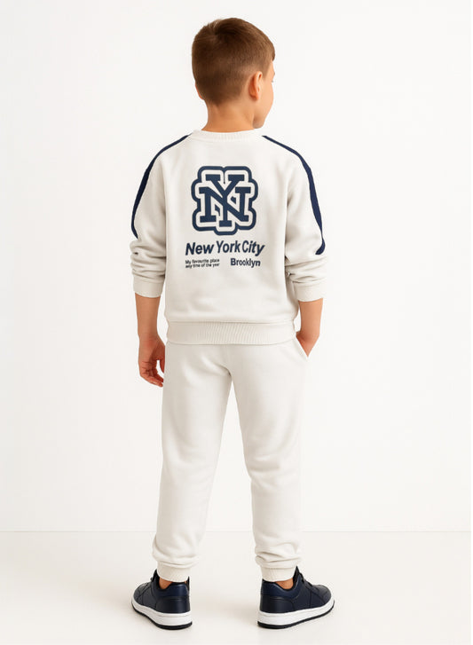 NYC Graphic Boys Sweatshirt & Jogger Set - White & Navy