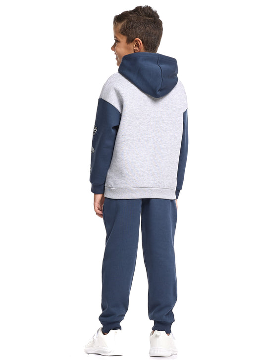 Boys Zip-Neck Colourblock Fleece Tracksuit - Navy & White
