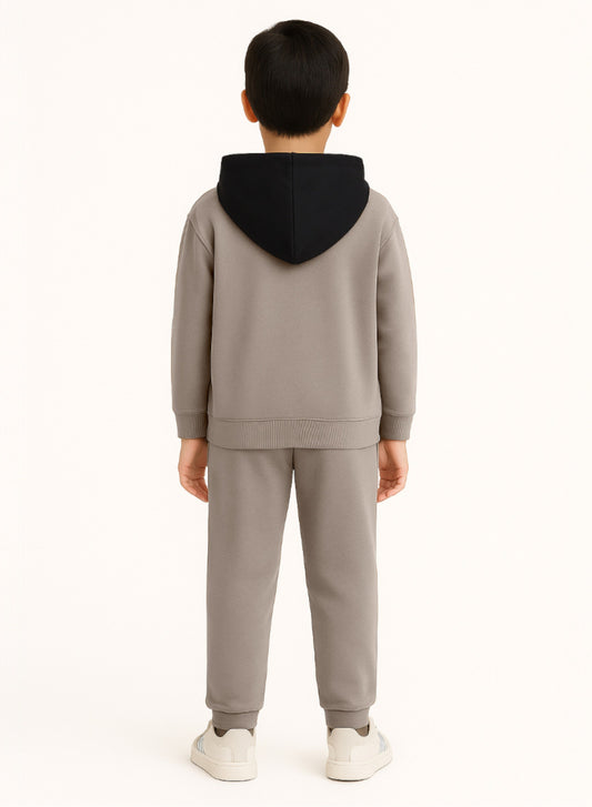 Boys Paris Patch Hoodie Fleece Tracksuit - Beige