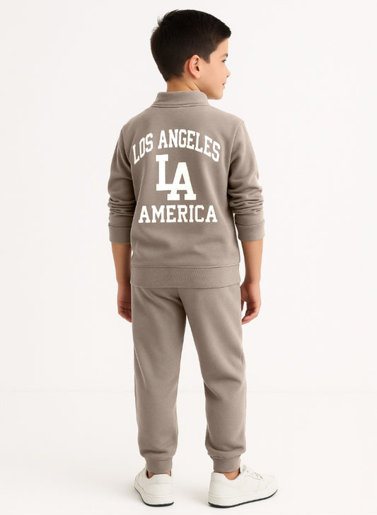Boys LA Patch Zip-Neck Fleece Tracksuit - Light Grey