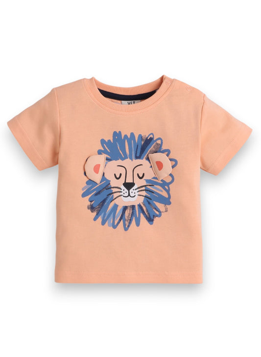 Victor and Jane Infant 2PC Set, Orange T-Shirt with Cute Tiger And Blue Shorts