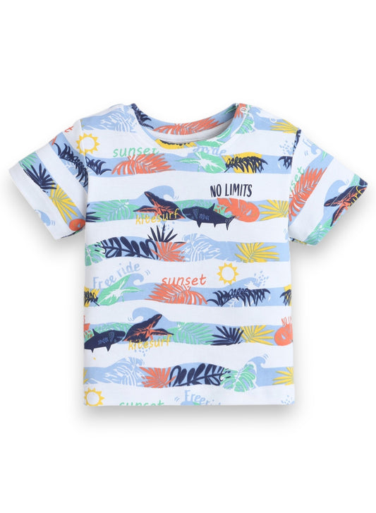 Victor and Jane Boys' Shark Surfing Off White and Blue T-Shirt and Shorts Set