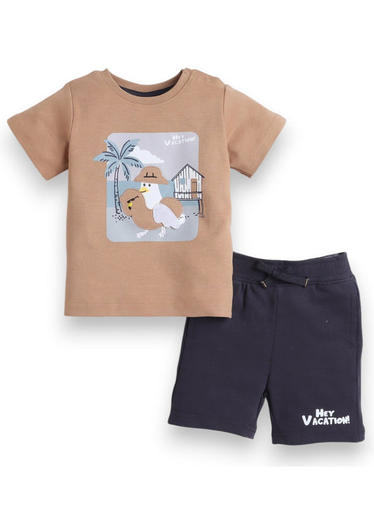 Victor and Jane Infant Boys' Light Brown And Green T-Shirt and Shorts Set