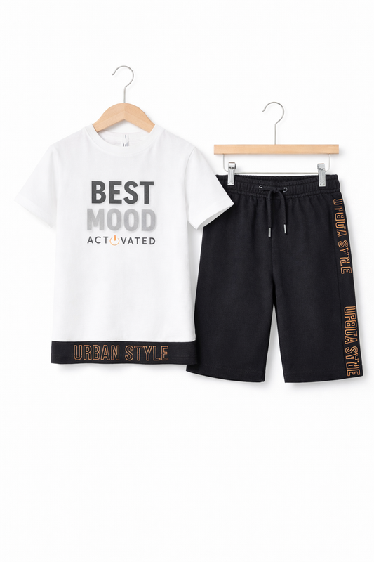 Boys Good Day Printed T-Shirt & Black Shorts Set