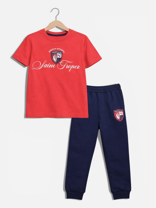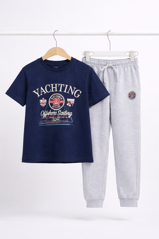 Boys Yachting Printed T-Shirt & Grey Terry Joggers Set