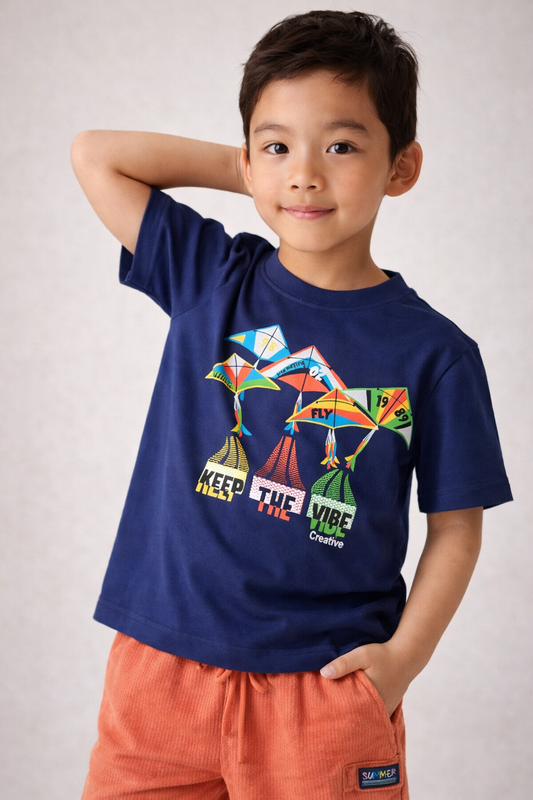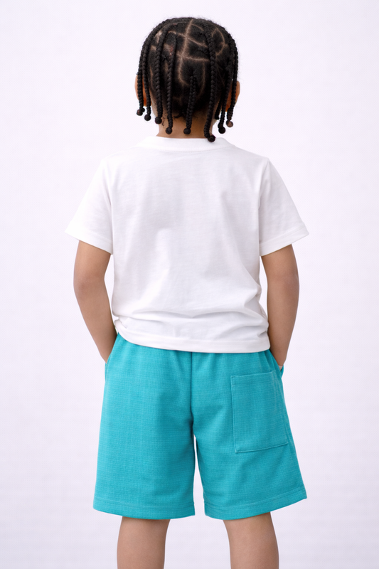 Boys Vibes Printed T-Shirt & Light Blue Shorts Set