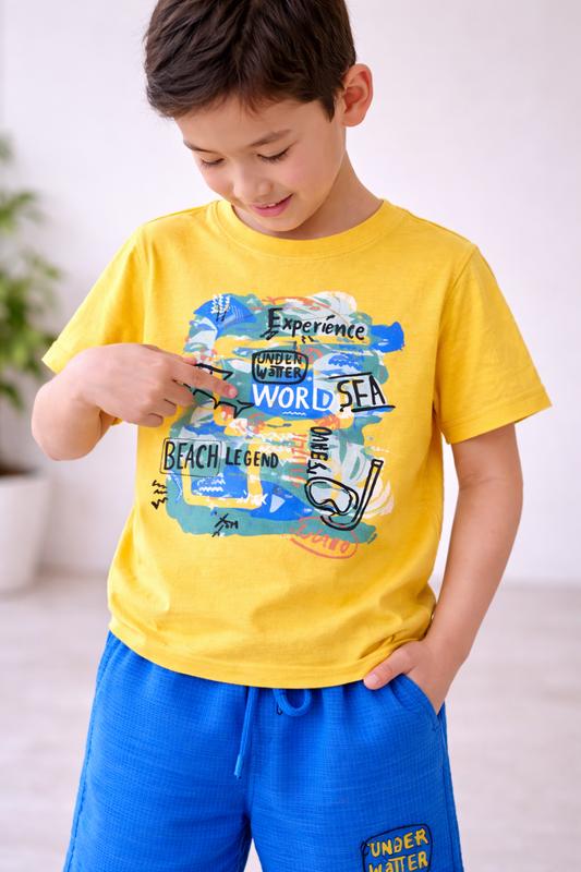 Boys Beach Trip Printed T-Shirt & Blue Shorts Set