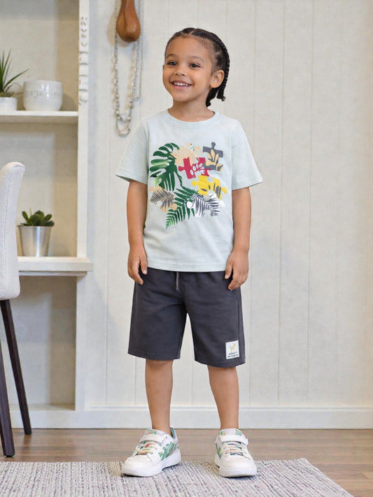 Boys Palm Runner Printed T-Shirt & Grey Shorts Set