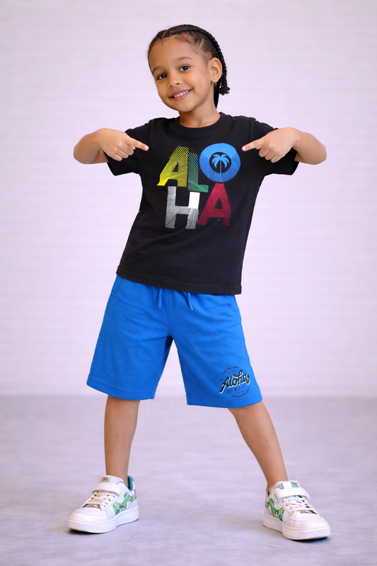 Boys’ 2-Piece Set – “Aloha” Graphic T-Shirt & Shorts