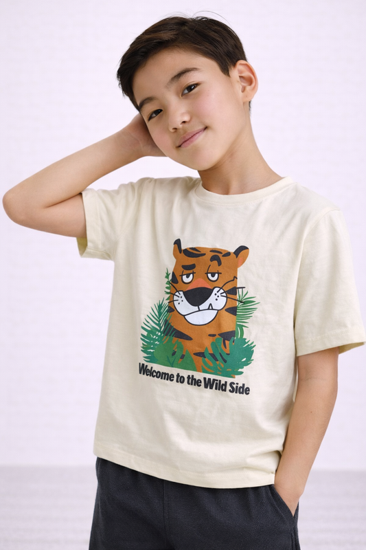 Boys’ 2-Piece Set – Tiger Graphic T-Shirt (Front & Back Print) & Shorts