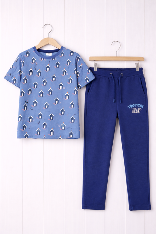 Boys’ 2-Piece Set – All-Over Print T-Shirt & “Tropical Trip” Joggers