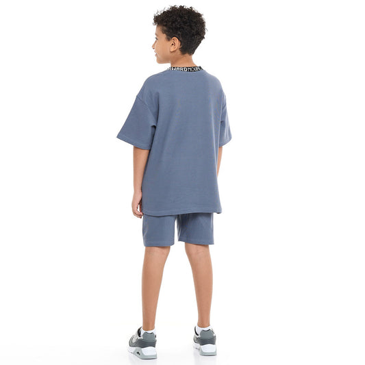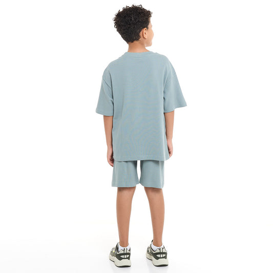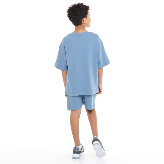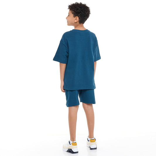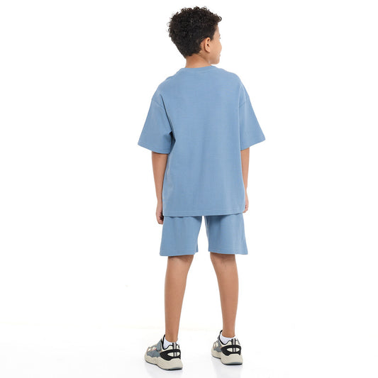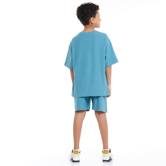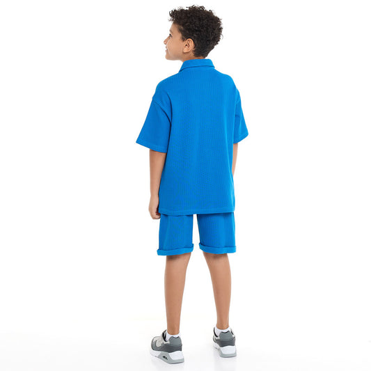 Victor and Jane Sr Boys' Jacquard Set – Blue 2-Piece Outfit with T- Shirt & Shorts, Rich Color & Textured Design, 9-10 YRS