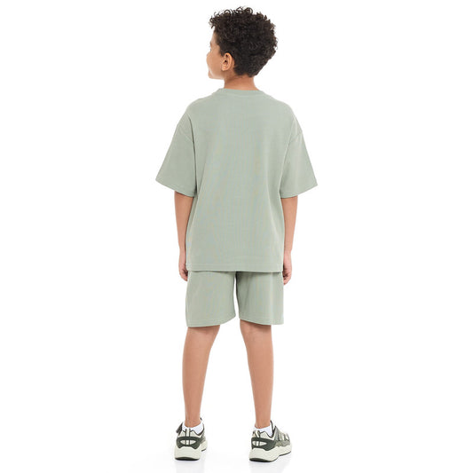 Victor and Jane Boys' Cord Set – Olive T-Shirt and Shorts Outfit with Label Detail