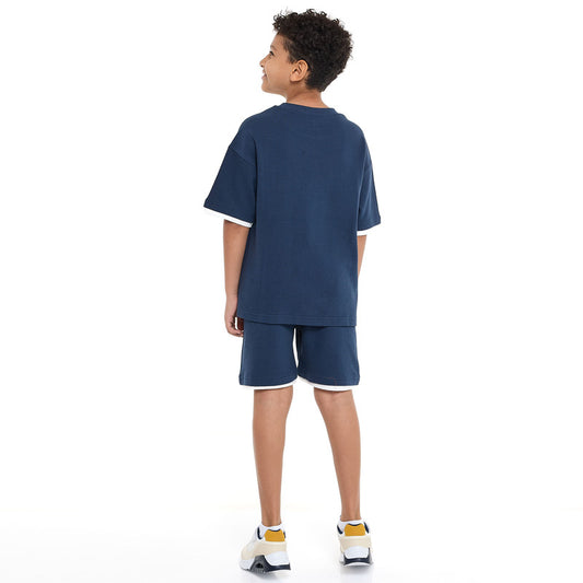 Victor and Jane Boys' Cord Set – Navy T-Shirt and Shorts Outfit