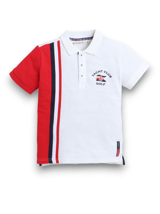Victor & Jane Junior Boys' Polo T-Shirt – Comfortable Cotton Casual Wear - White & Red