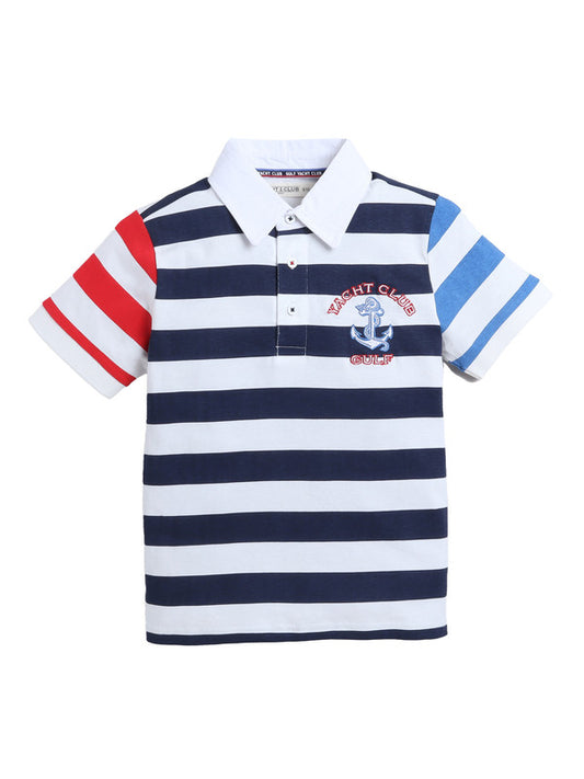 Victor & Jane Striped Polo T-Shirt, Comfortable Cotton Casual Wear for Boys