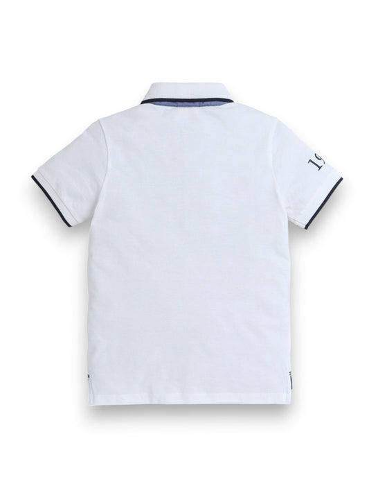 Victor & Jane Boys' Polo T-Shirt – White colour with Embroidered Label detail