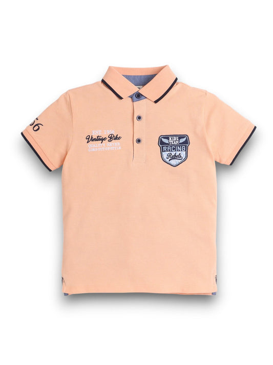 Victor & Jane Boys' Polo T-Shirt – Orange colour with Embroidered Label Detail