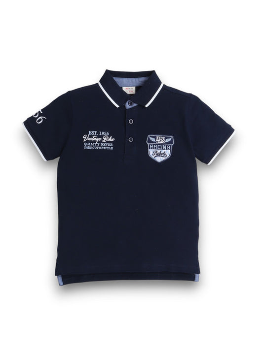 Victor & Jane Boys' Polo T-Shirt – Blue color with Embroidered Label Detail