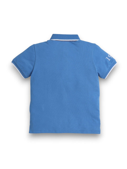 Victor & Jane Boys' Polo T-Shirt – Blue colour with Embroidered Label detail