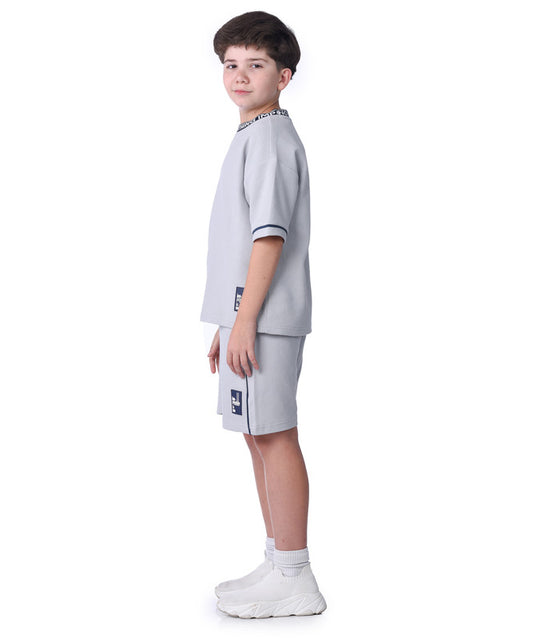 Victor and Jane Boys' Cord Set – Grey T-Shirt and Shorts Outfit