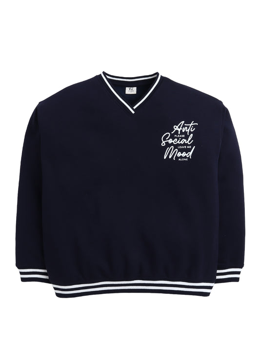 V-Neck "Anti Social Mood" Sweatshirt – Navy | 100% Cotton Fleece |