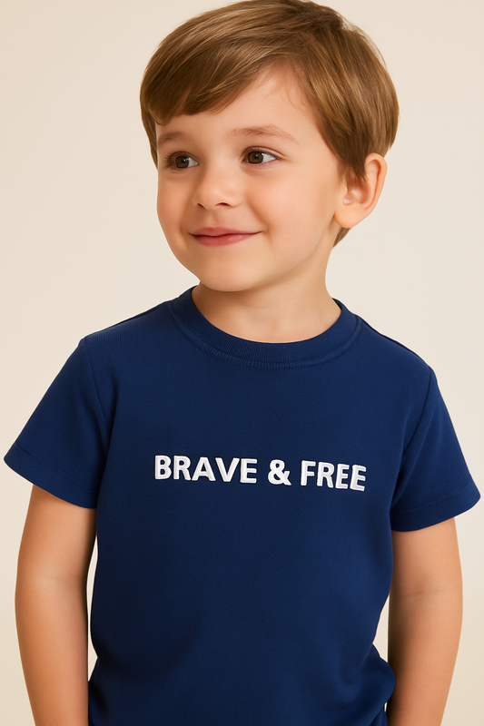 Boys Navy "Brave & Free" Cotton T-Shirt (2Y–9Y)