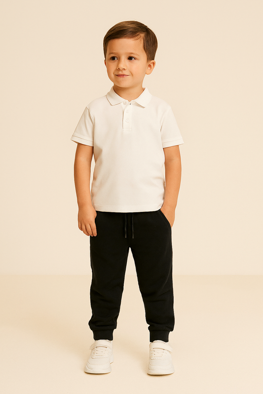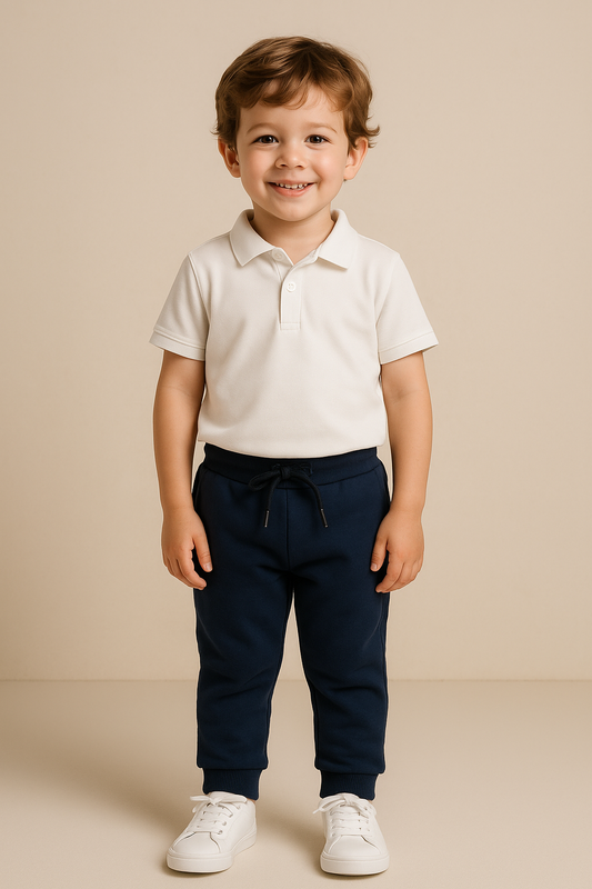 Boys Warm Cotton Fleece Set - White Long Sleeve Top & Navy Joggers