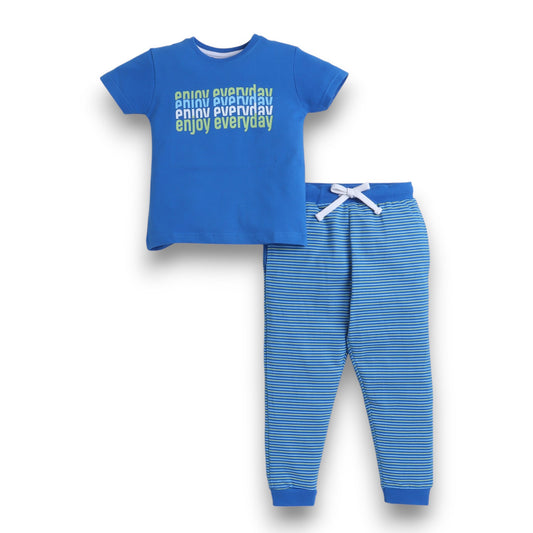 Victor and Jane - Printed T-shirt and Stripes Pyjama Set