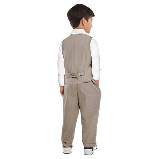 Ecru/Taupe Waistcoat And Pant Set With Shirt And Bow Tie