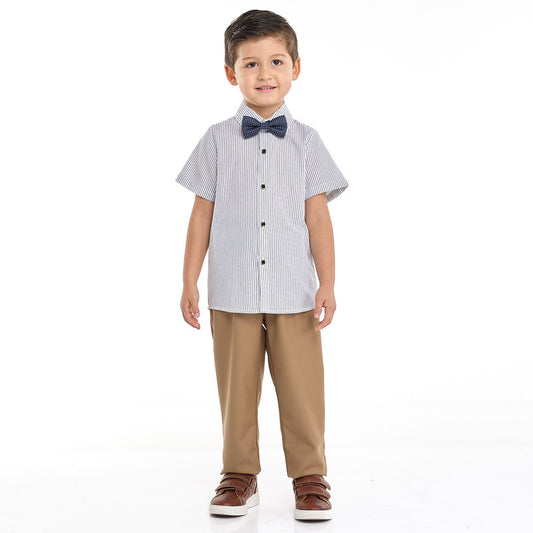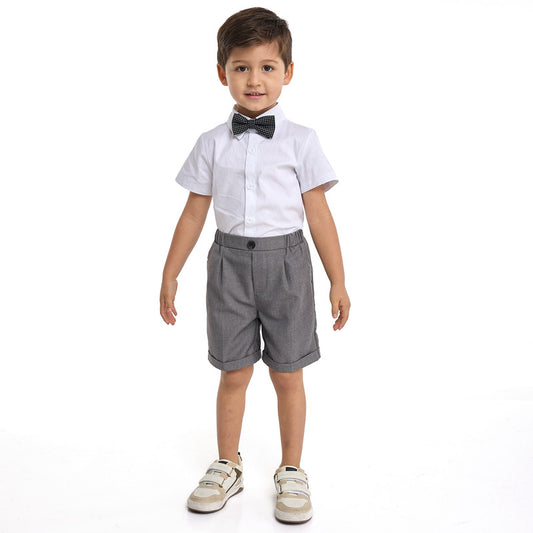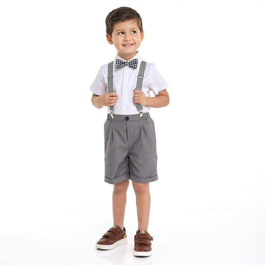 Gray Shorts And Braces Set With Shirt And Bow Tie