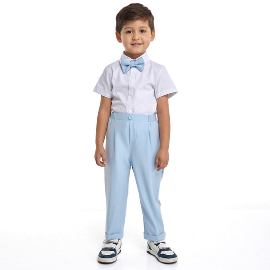 Blue Shorts And Braces Set With Shirt And Bow Tie
