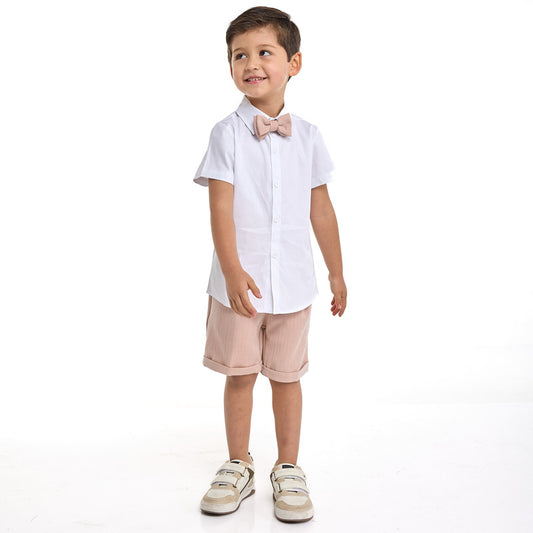 Salmon Color Waistcoat And Short Set With Shirt And Bow Tie