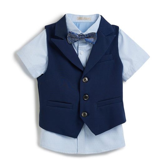 Blue Waistcoat And Short Set With Shirt And Bow Tie