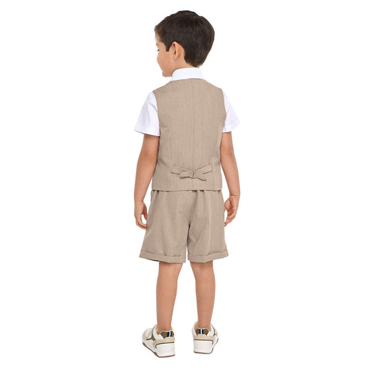 Neutral/Beige Waistcoat And Short Set With Shirt And Bow Tie