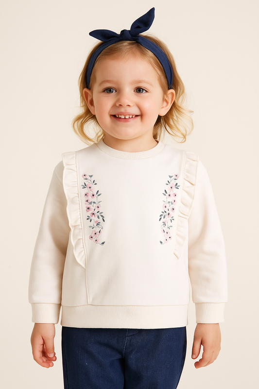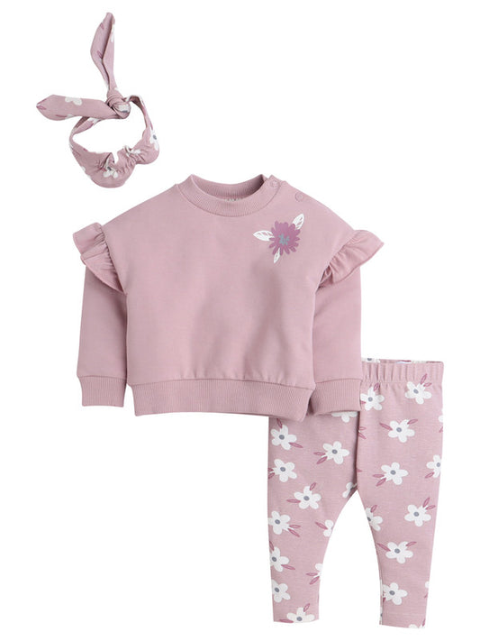 Dirkje 3-Piece Ruffled Floral Sweatshirt with Matching Pants & Headband Set