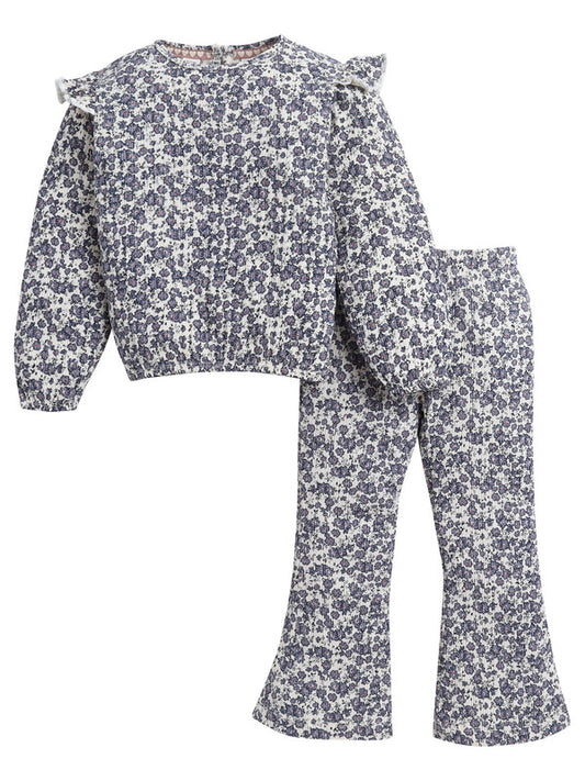 Dirkje Girls 2-Piece All-Over Floral Blouse and Flared Pant Set