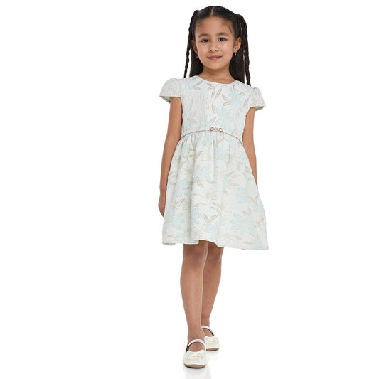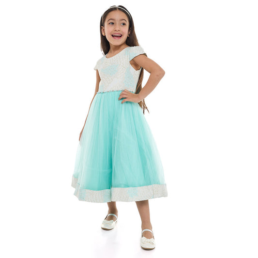 Girls Mint Jacquard & Tulle Dress