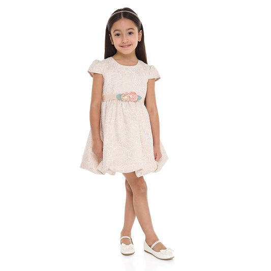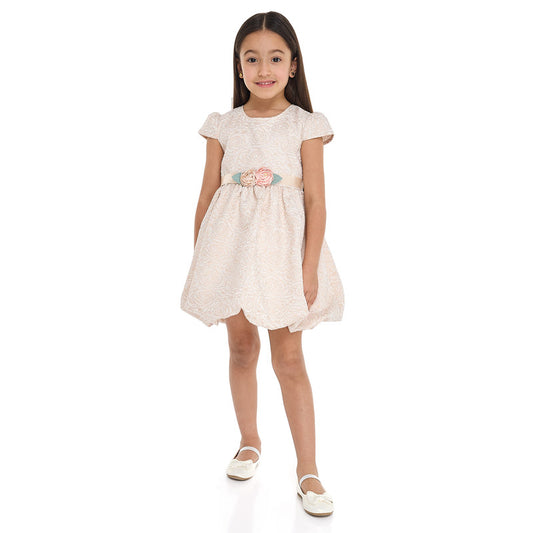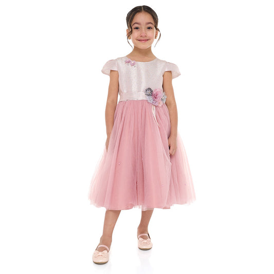Girls Old Rose Jacquard & Tulle Dress With Flower Decoration