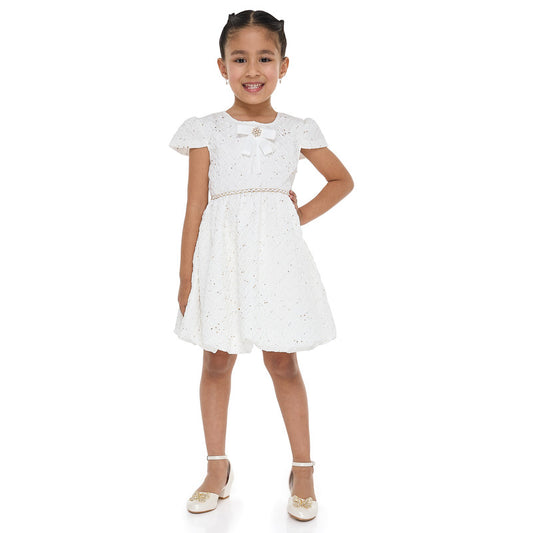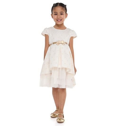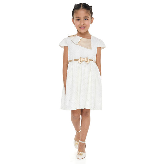 Ivory/Gold Bow Jacquard Dress