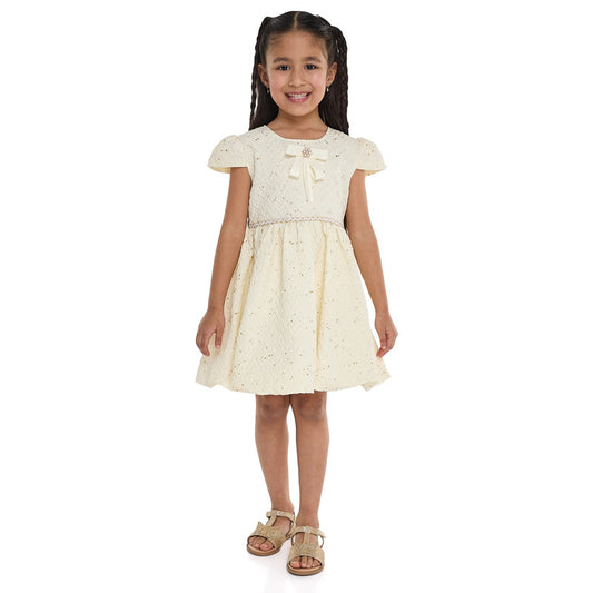 Lemon/Gold Bow Jacquard Dress