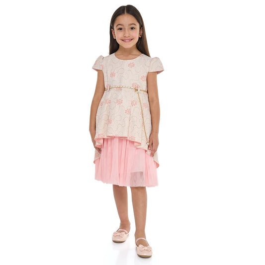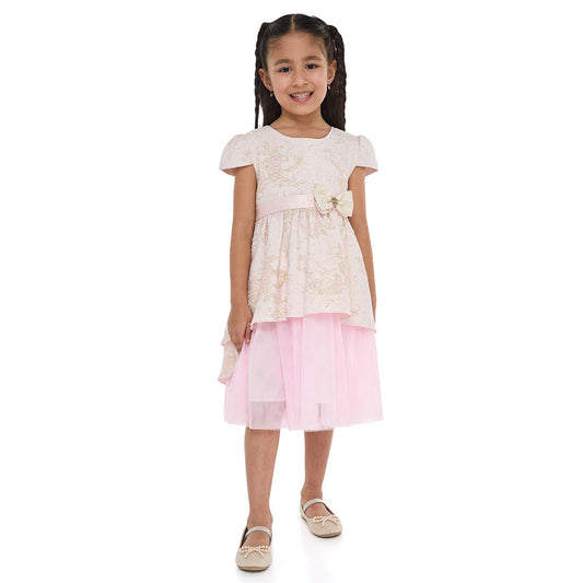 Girls Chic Pink/Gold Jacquard & Tulle Party Dress