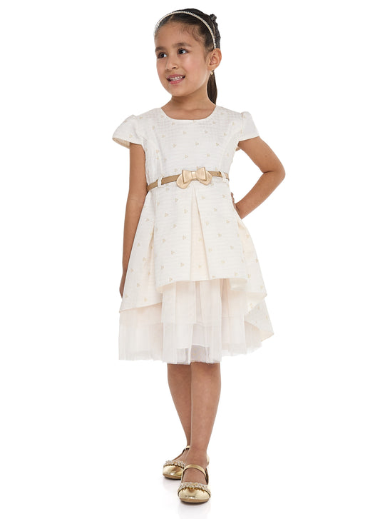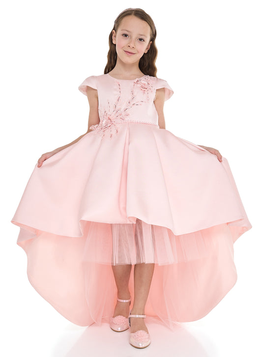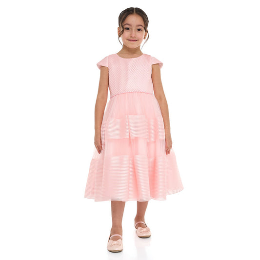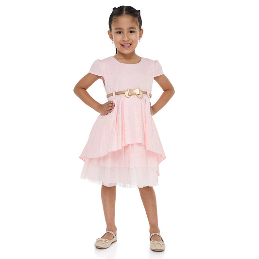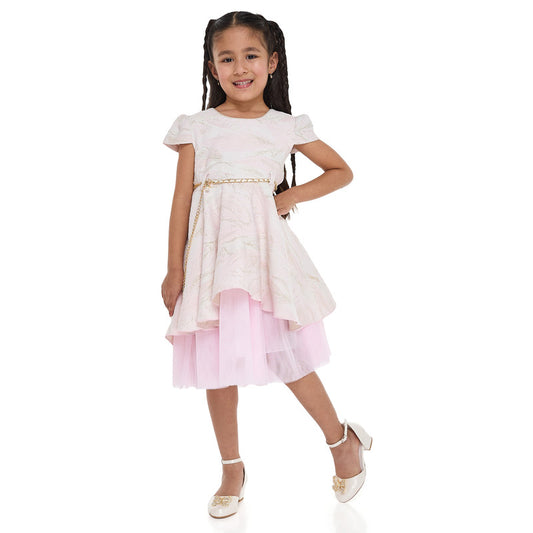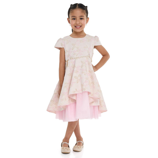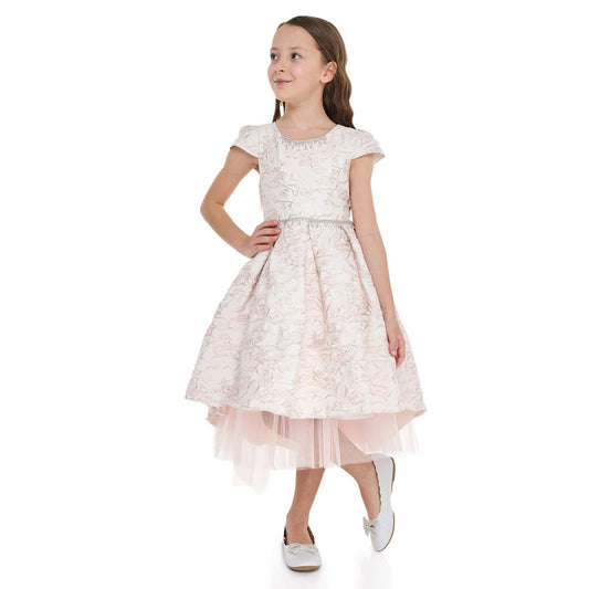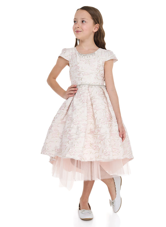 Girls Elegant Lt Pink/Gold Jacquard & Tulle Party Dress