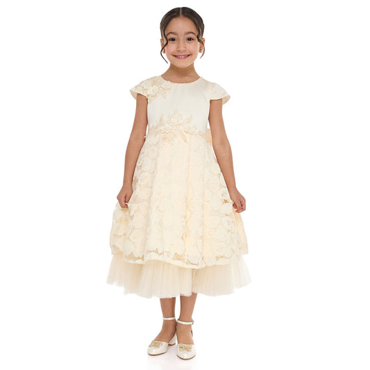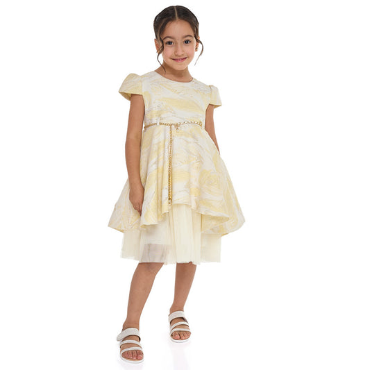 Girls Chic Yellow/Gold Jacquard & Tulle Party Dress