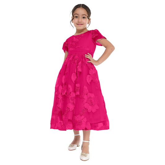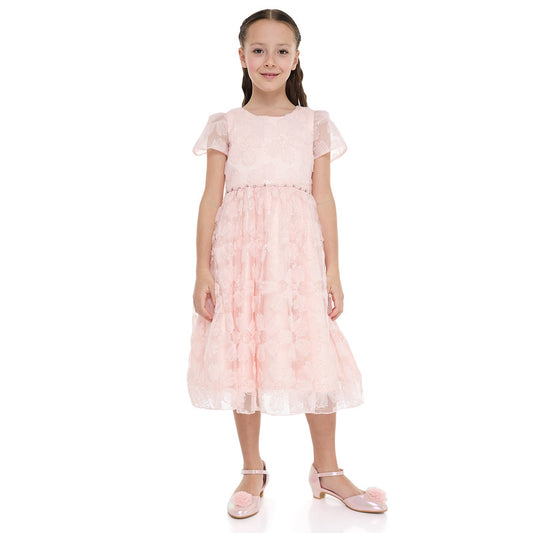 Rose 3D Flower Mesh Occasion Dress
