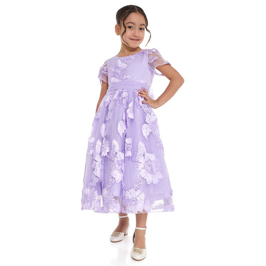 Lilac 3D Flower Mesh Occasion Dress