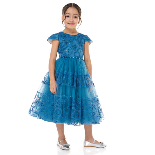 Elegant Blue Tulle Dress With Lace And Sequins