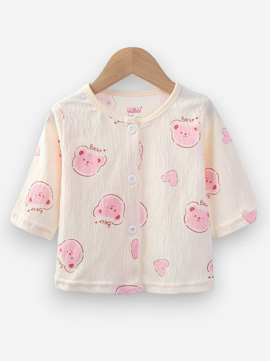 Baby Girls Printed Muslin Cotton Pyjama Set – Pink Bear Printed